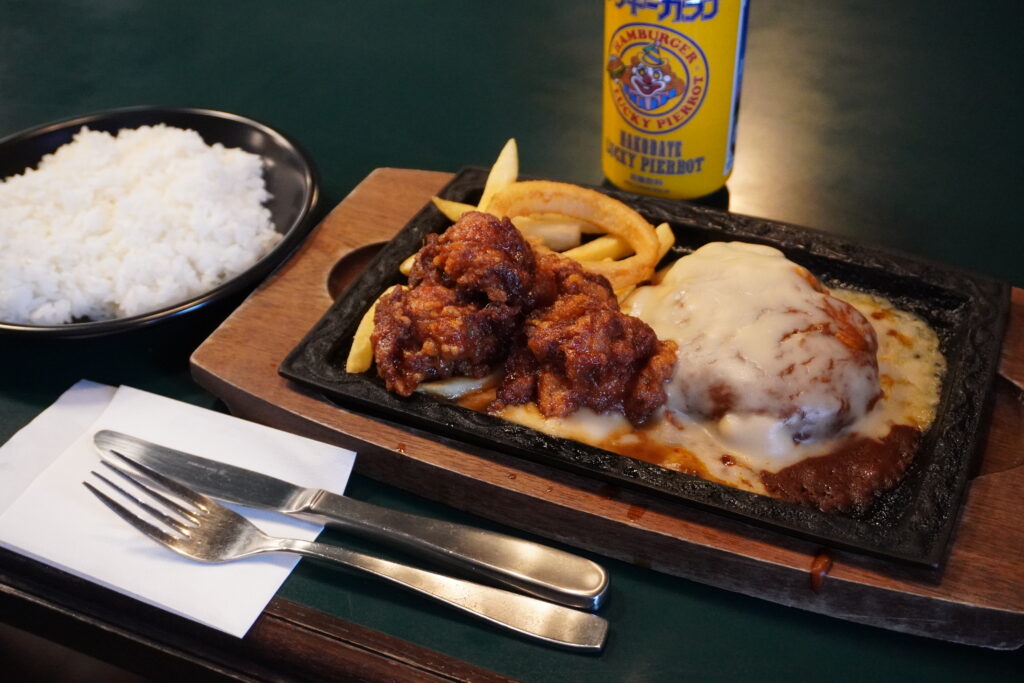 オムライスを食べようと思ったが、売り切れていたので鉄板ハンバーグステーキ。